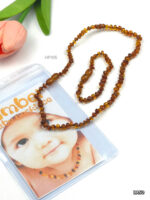 Bộ trang sức bạc gồm chuỗi vòng cổ và vòng tay được gắn hổ phách sang trọng với sắc màu vàng mật ong và nâu đậm đầy cuốn hút.