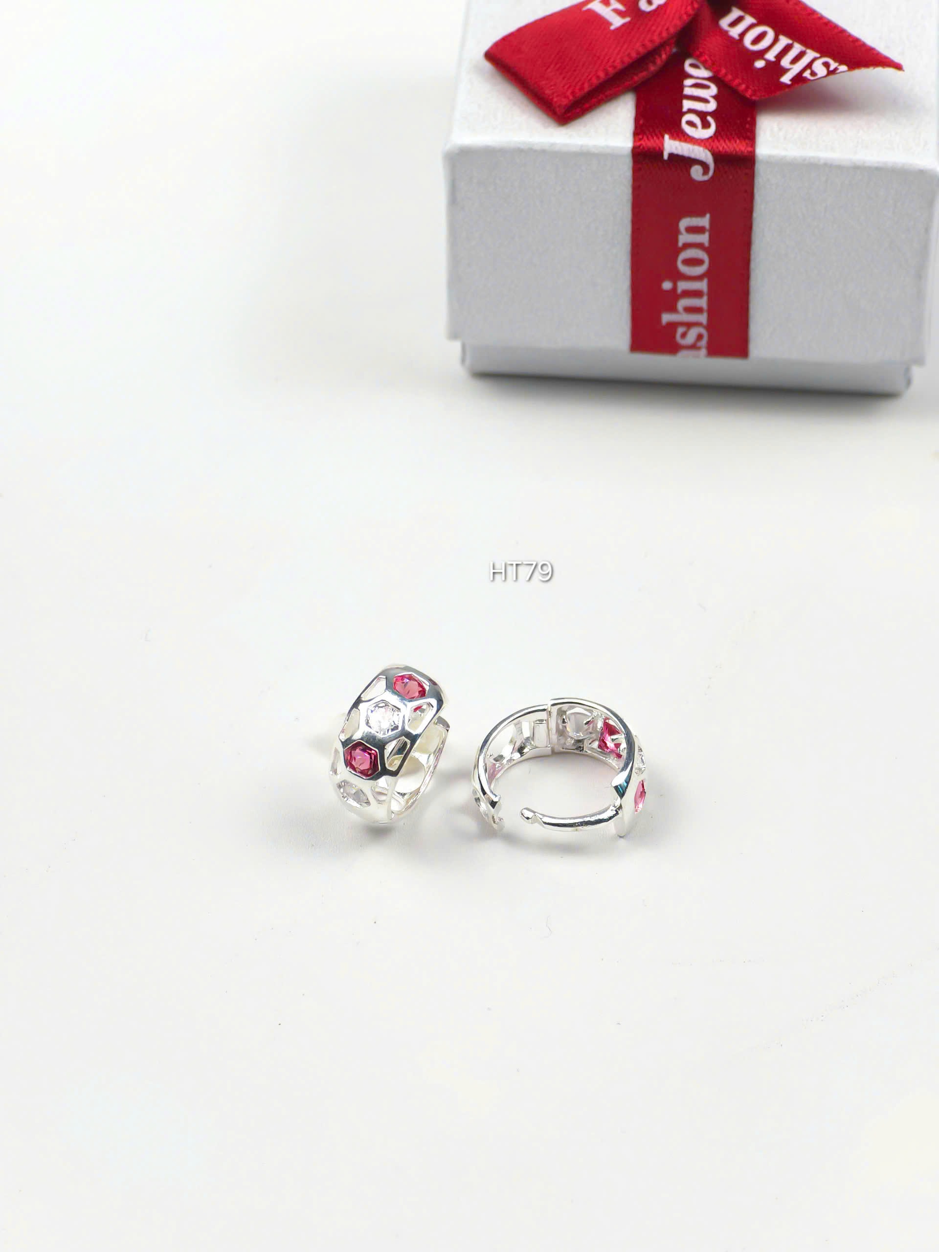 Bông Tai Bạc Đính Đá Đỏ Trắng Sang Trọng