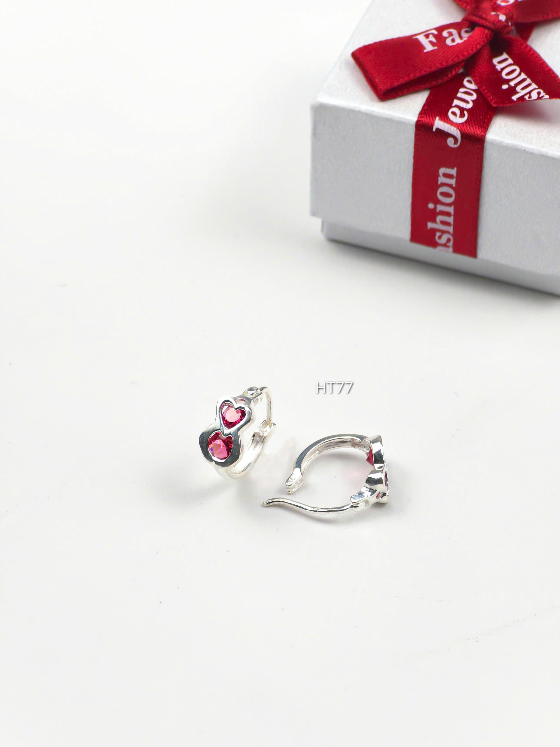 Bông Tai Bạc Đính Đá Hồng Hình Trái Tim Sang Trọng