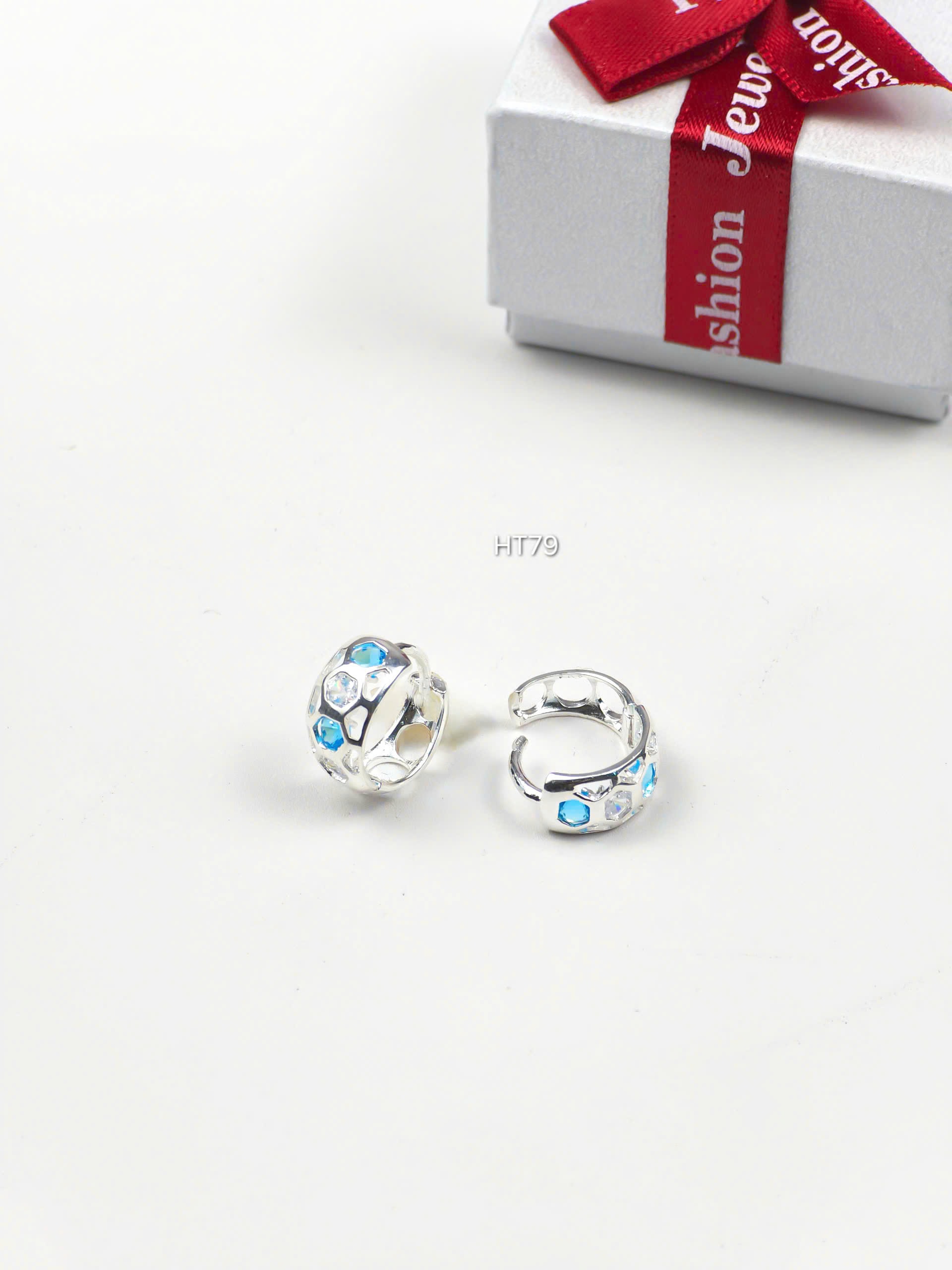 Bông Tai Bạc Đính Đá Xanh Lam Thanh Lịch