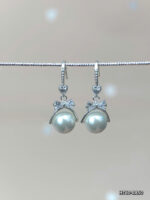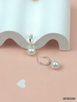 Điểm nhấn của bông tai là viên ngọc trai tròn đều, bề mặt bóng loáng, được cố định bằng khớp nối bạc, tạo nên vẻ đẹp sang trọng và quyến rũ. Phần móc treo mảnh mai với họa tiết chấm nhỏ tăng thêm sự tinh tế. Bông tai còn được trang trí thêm viên đá hình trái tim và hai viên đá lớn lấp lánh, tạo hiệu ứng bắt mắt dưới ánh sáng.