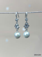 Kiểu dáng của bông tai là sự hài hòa giữa vẻ lấp lánh của đá nhỏ trên móc cài và vẻ mịn màng, bóng bẩy của ngọc trai. Chi tiết trang trí hình trái tim và ngôi sao được đính đá sáng bóng, tạo hiệu ứng lấp lánh khi ánh sáng chiếu vào, làm tăng thêm sự duyên dáng và đáng yêu cho bông tai.