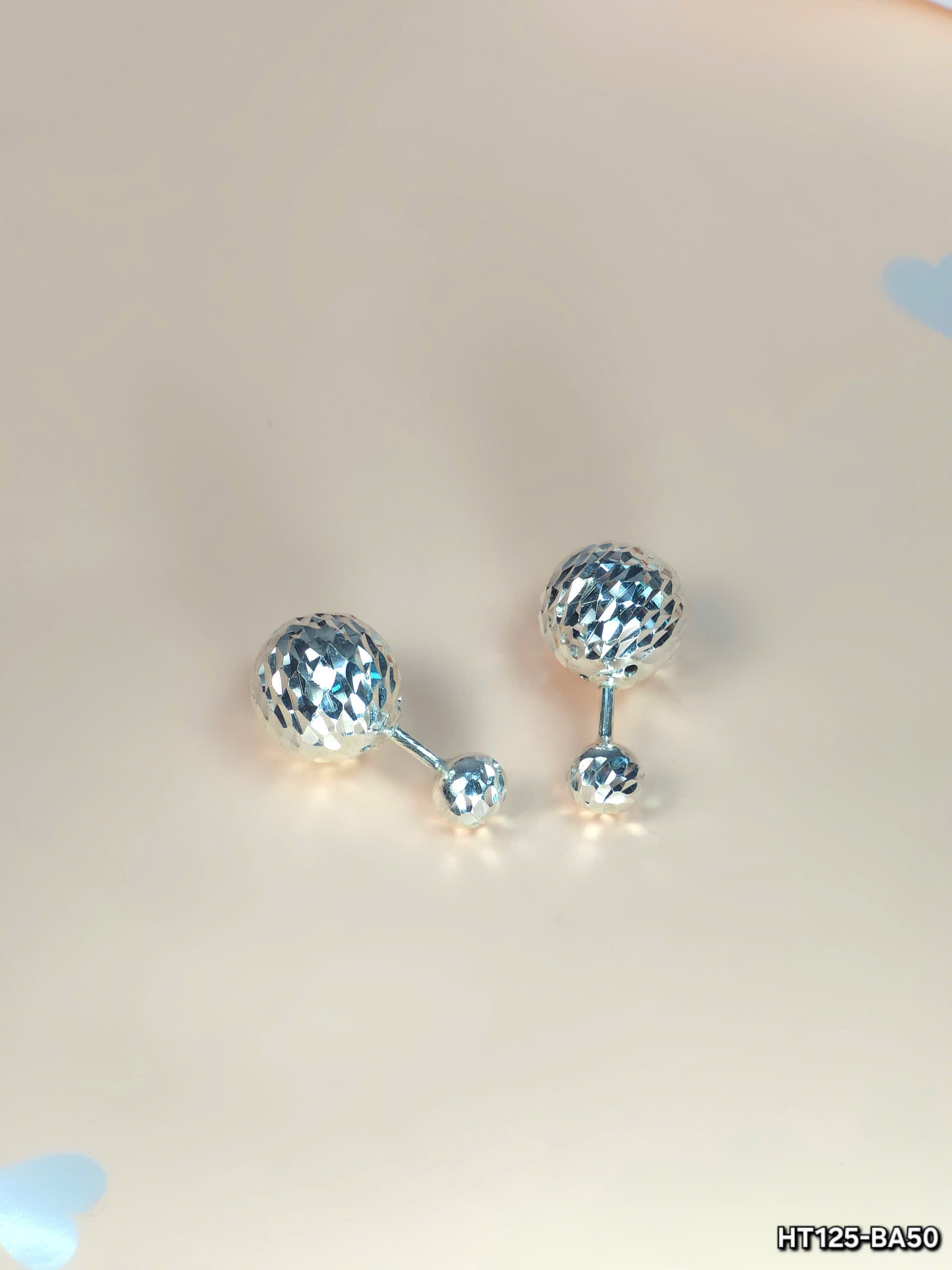 Đặc biệt, bề mặt các quả cầu được hoàn thiện bằng kỹ thuật cắt kim cương đa diện, tạo ra hiệu ứng phản chiếu ánh sáng lung linh, nổi bật khi chuyển động. Kiểu dáng nhỏ gọn, làm cho đôi bông tai trở thành một phụ kiện hoàn hảo để sử dụng trong các dịp thường ngày hoặc các sự kiện đặc biệt.