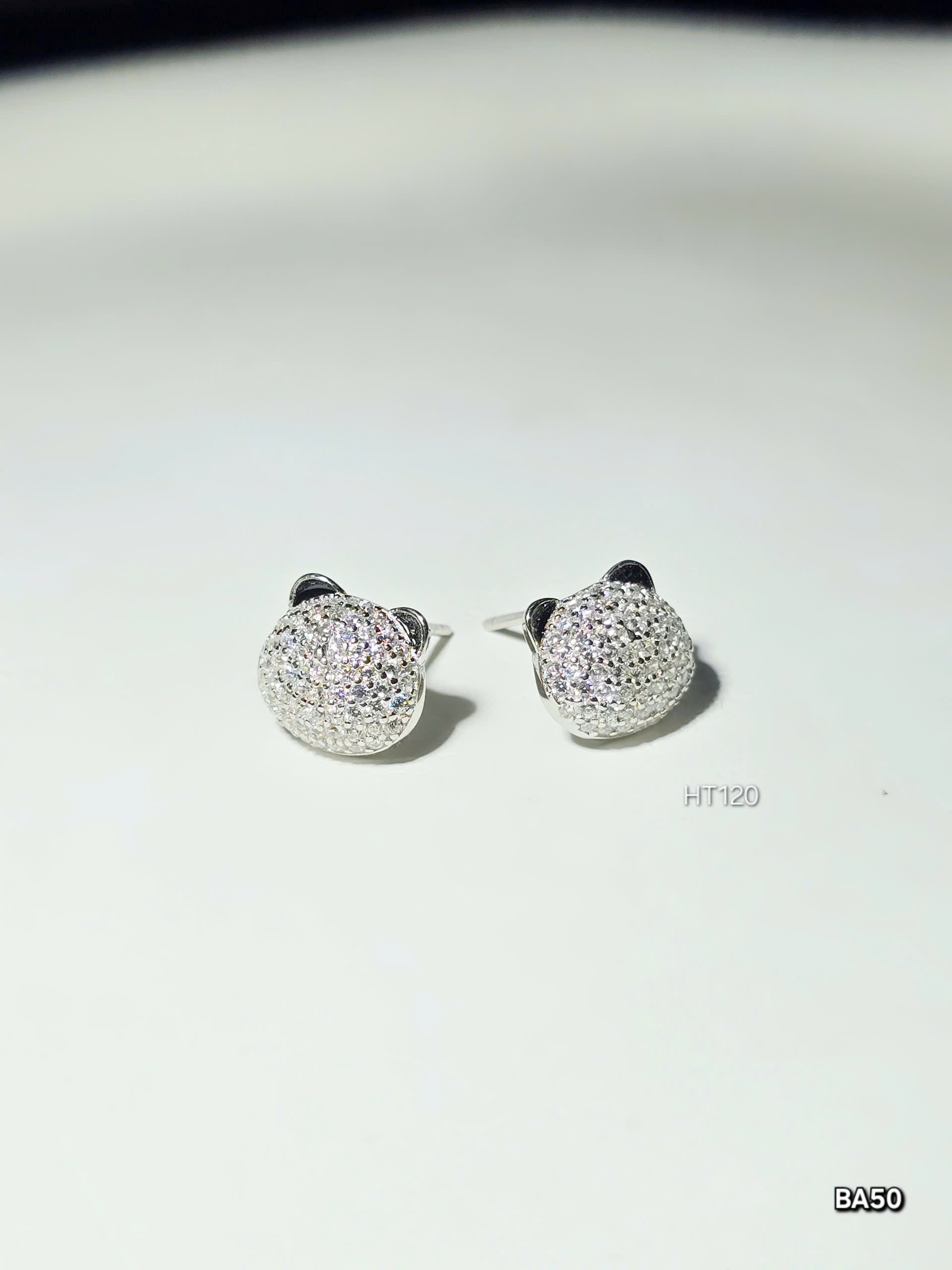 Khám phá đôi bông tai bạc xi kim hình gấu đính đá lấp lánh, một tác phẩm nghệ thuật tinh tế từ Bacvn. Thiết kế độc đáo với hình dáng đầu gấu dễ thương, bề mặt được phủ kín bởi vô số hạt đá nhỏ li ti, tạo hiệu ứng lung linh dưới ánh sáng. Phần tai gấu nhô lên tự nhiên, được làm bóng loáng, tạo sự đối lập hoàn hảo với phần mặt tròn lấp lánh phía dưới.