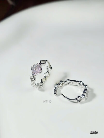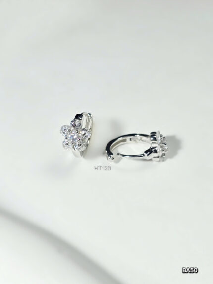 Bông Tai Bạc Thanh Lịch Kiểu Vòng Tròn Hoa Đính Đá