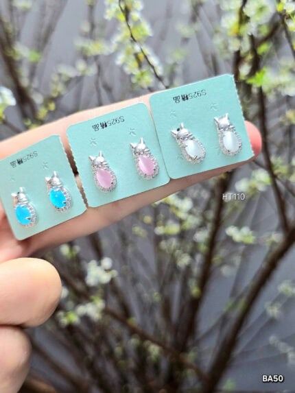 Bông Tai Bạc Tinh Tế Thiết Kế Hình Mèo Đính Đá Lấp Lánh