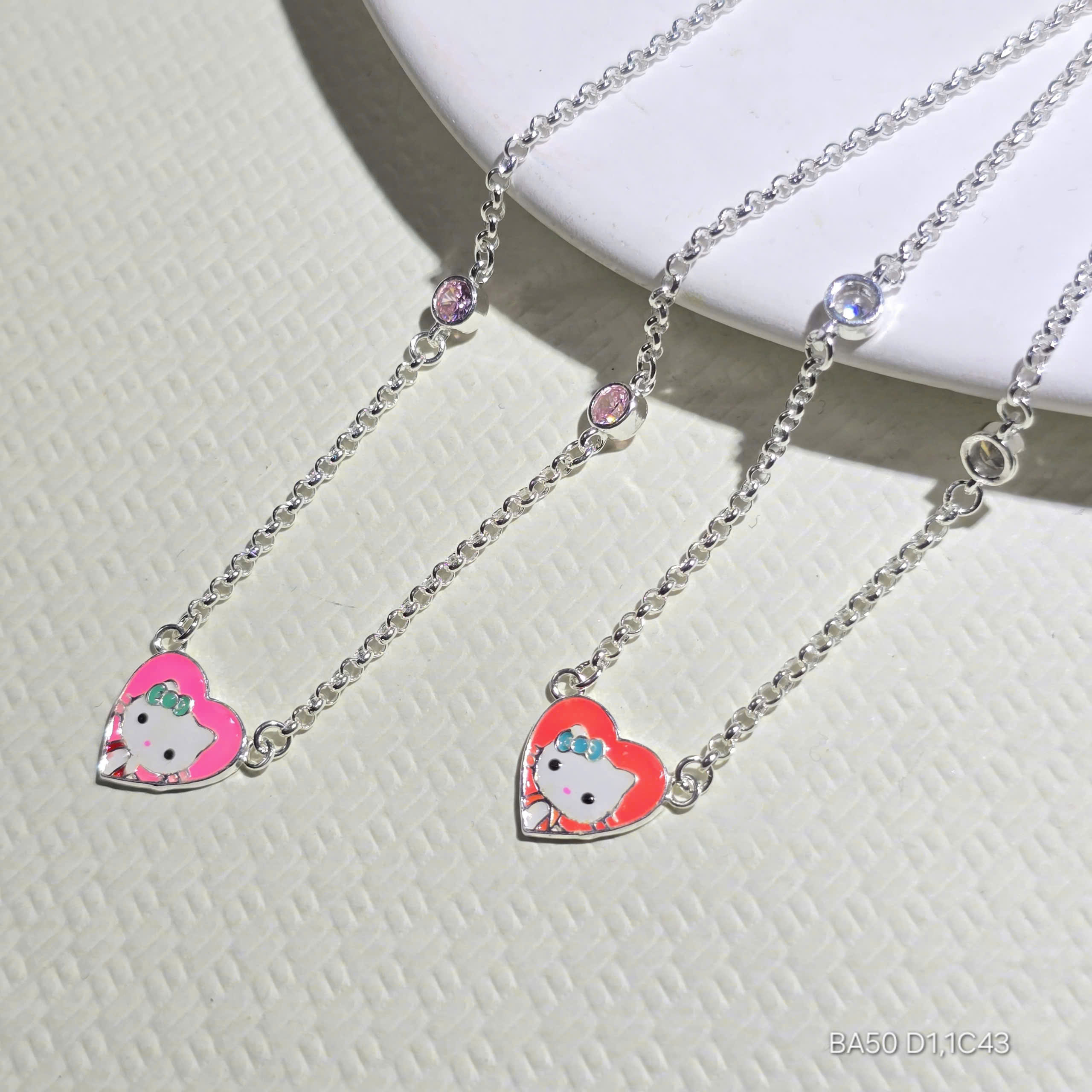 - Thiết kế độc đáo: Dây chuyền liền mặt với hình trái tim hồng pastel nhẹ nhàng, kết hợp hình ảnh Hello Kitty đáng yêu, tạo điểm nhấn nổi bật.