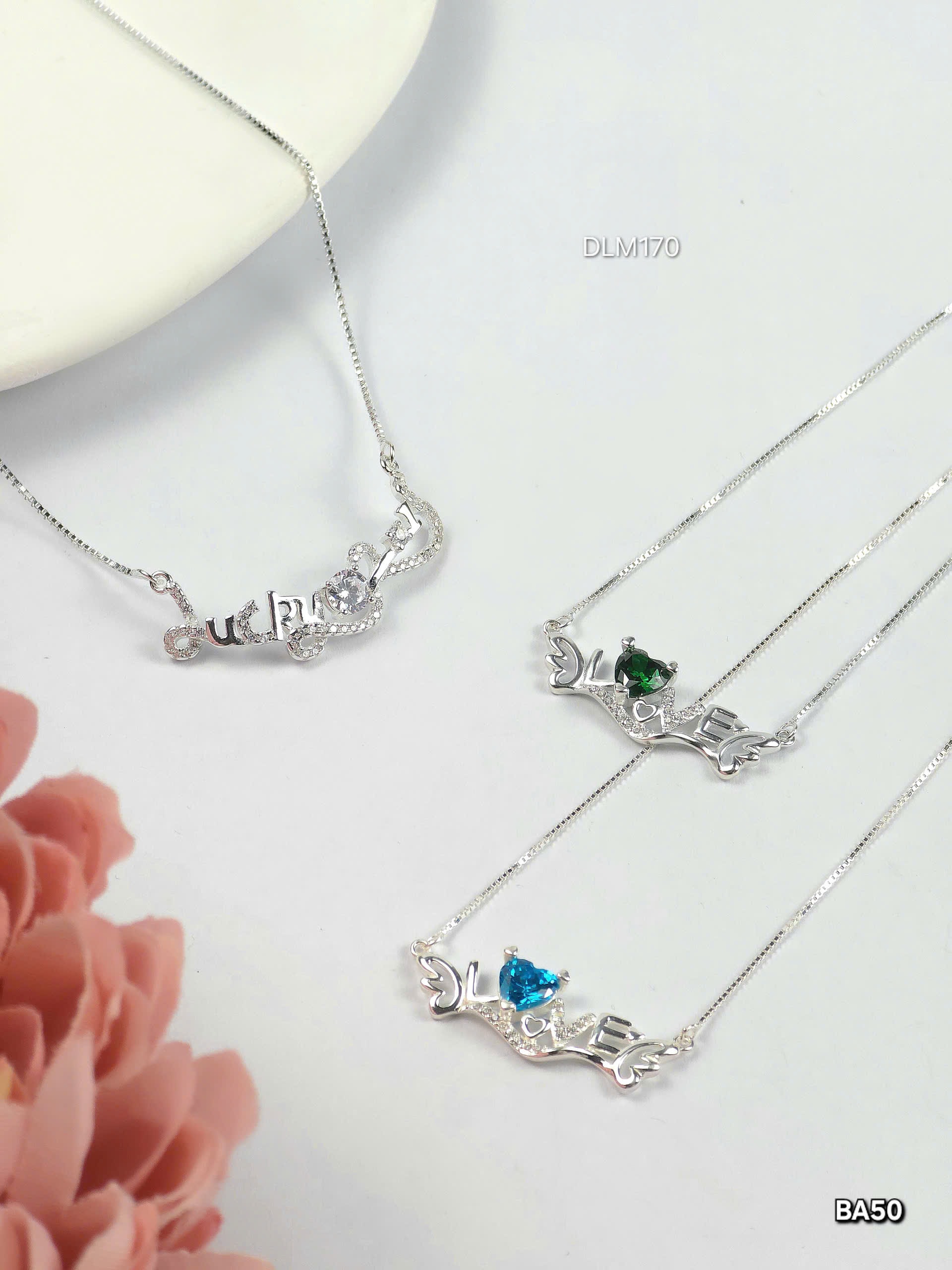 Dây Chuyền Bạc Nữ Liền Mặt LOVE Đính Đá Lấp Lánh