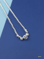 - Thiết kế độc đáo: Dây chuyền gồm các hạt bạc tròn nhỏ đều nhau, tạo cảm giác mềm mại khi đeo. Điểm nhấn là hạt bạc lớn ở trung tâm với họa tiết ngôi sao bốn cánh được khắc cẩn thận, tạo nên sự thu hút đặc biệt.