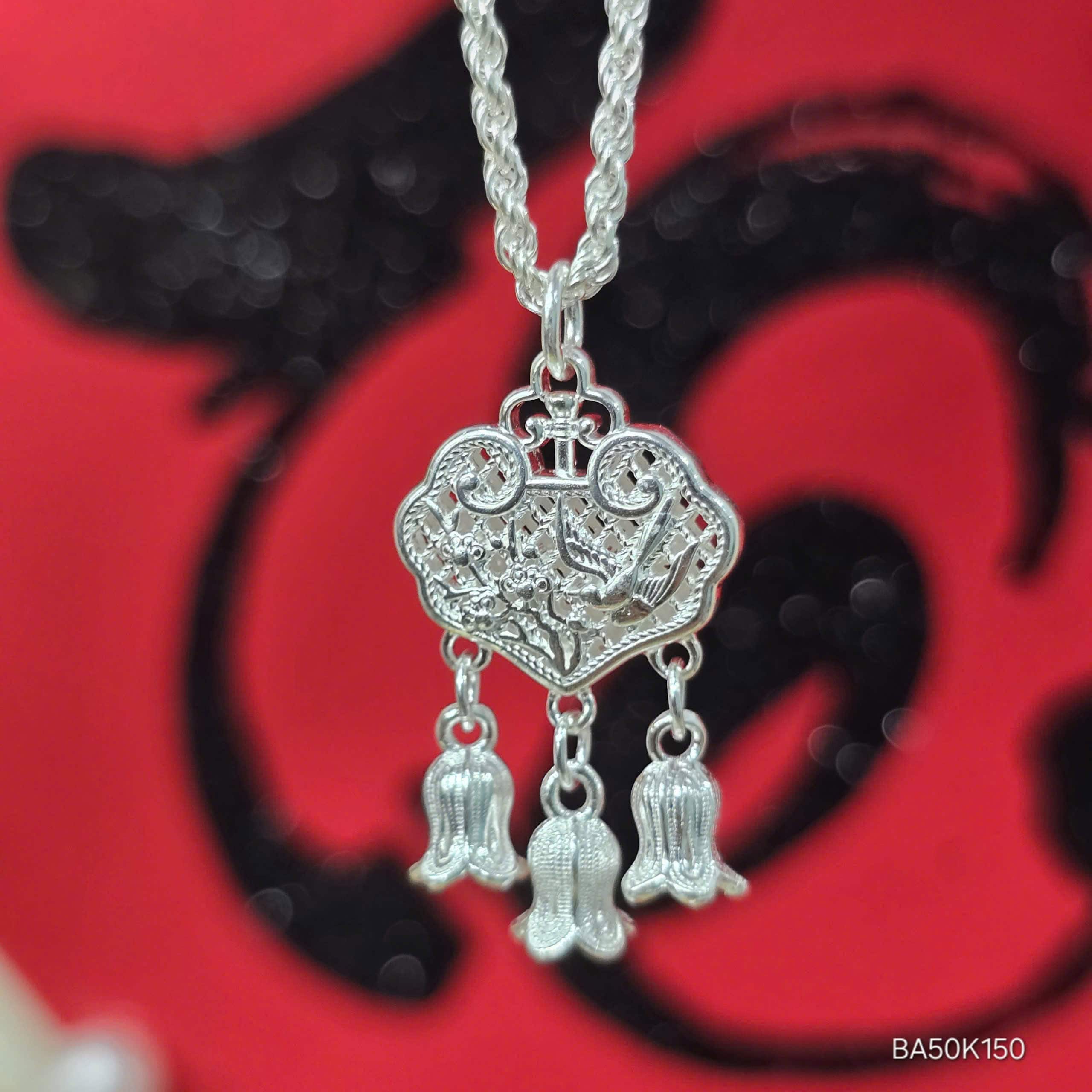 Khánh Bạc Đeo Cổ là sự kết hợp hoàn hảo giữa nghệ thuật và thời trang, phù hợp với những người phụ nữ yêu thích sự tinh tế và độc đáo. Sản phẩm được làm từ bạc nguyên chất, đảm bảo độ bền đẹp và an toàn cho người sử dụng.