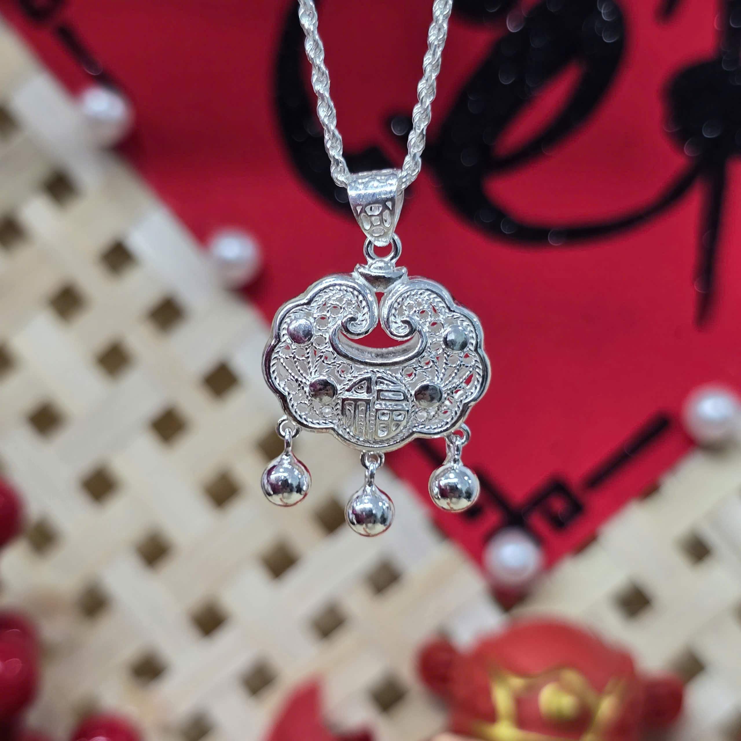 Khánh bạc với thiết kế tinh xảo, họa tiết truyền thống mang ý nghĩa may mắn. Chất liệu bạc cao cấp, phù hợp làm quà tặng ý nghĩa.