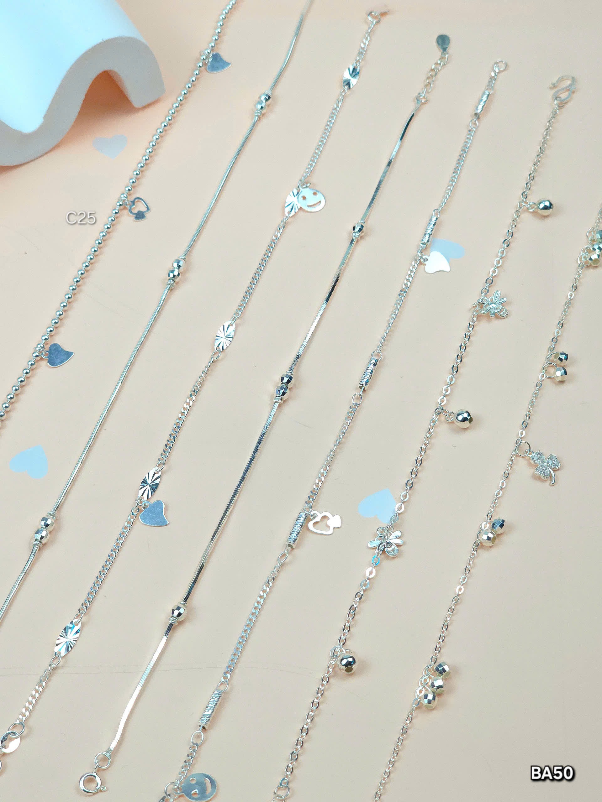 Khám phá bộ sưu tập lắc chân bạc nữ tinh xảo tại Bảo Anh. Thiết kế đa dạng, chất liệu bạc cao cấp, phù hợp mọi dịp.