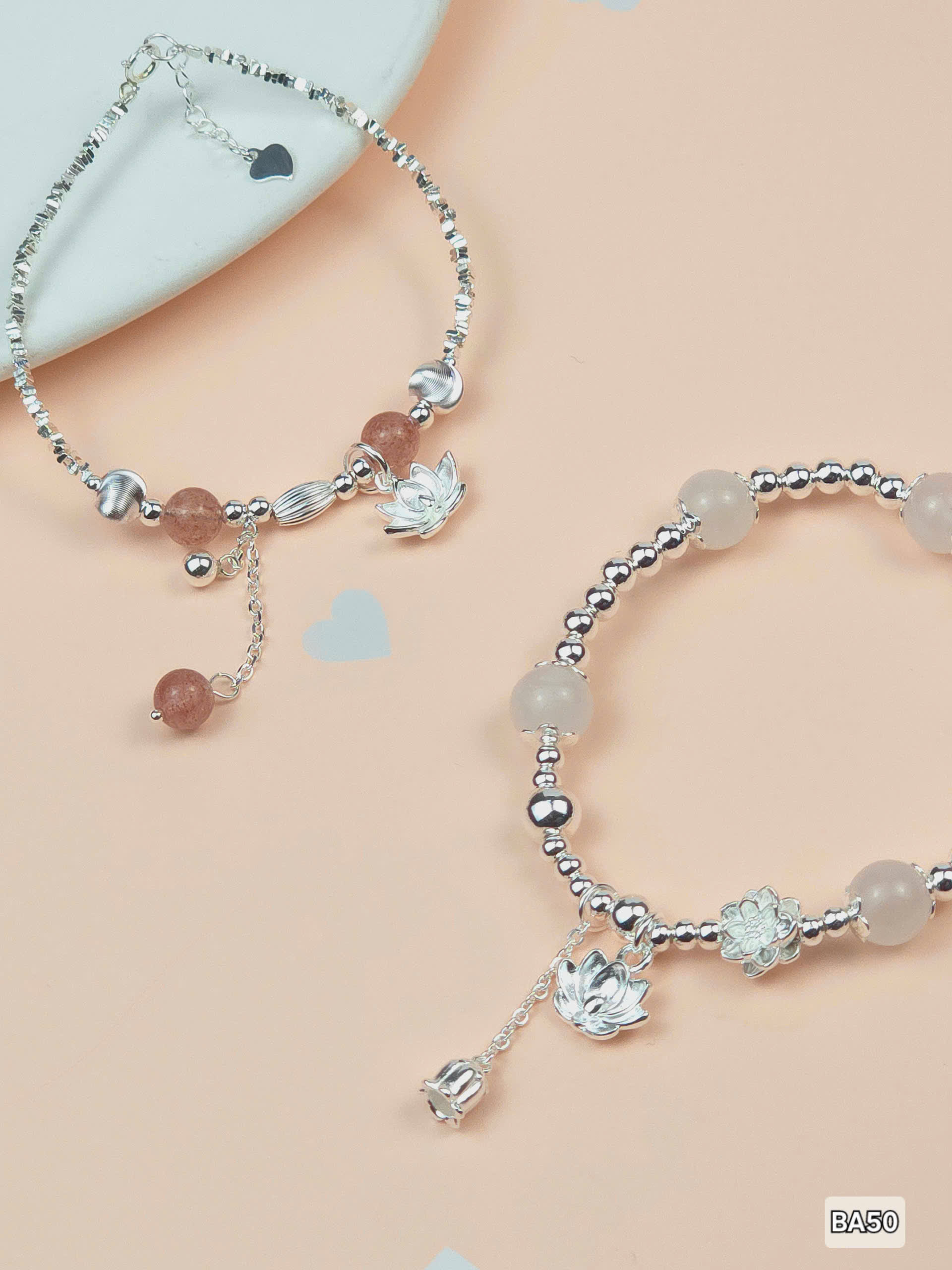 Lắc Tay Bạc Mix Ngọc Trai Tinh Tế Họa Tiết Hoa Sen
