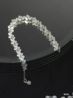 Lắc bạc đá kiểu dáng vuông L C35 nổi bật với các viên đá hình vuông được mài nhẵn, tạo hiệu ứng lấp lánh từ mọi góc nhìn. Dây lắc uốn lượn mềm mại nhưng vẫn đảm bảo độ chắc chắn, cùng với móc khóa tinh tế có biểu tượng hoa và chữ ‘925’.