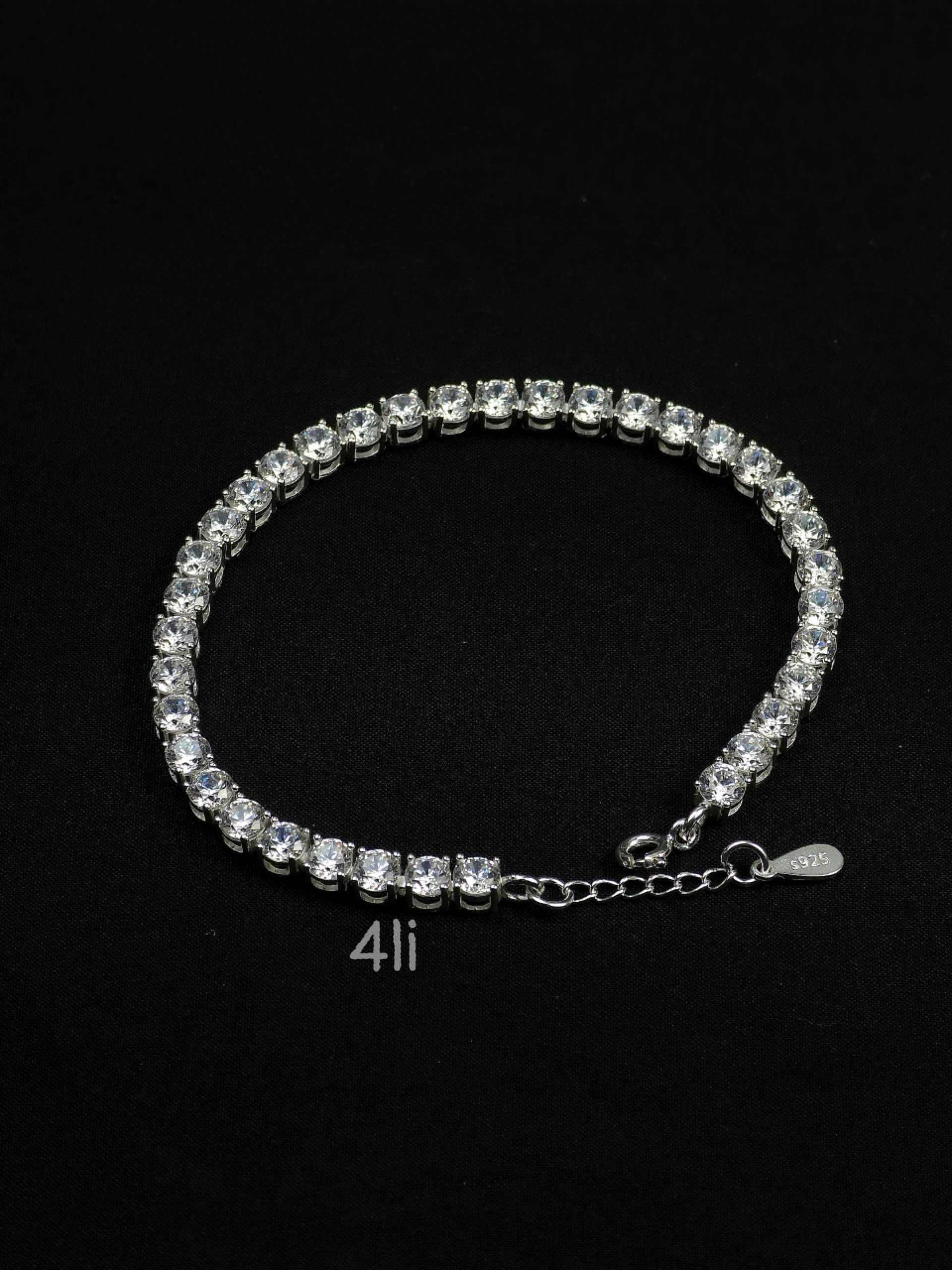 Lắc tay bạc nữ sang trọng đính đá lấp lánh, thiết kế đơn giản nhưng tinh tế với chất liệu bạc sáng bóng S925 và đá phản chiếu ánh sáng nổi bật.
