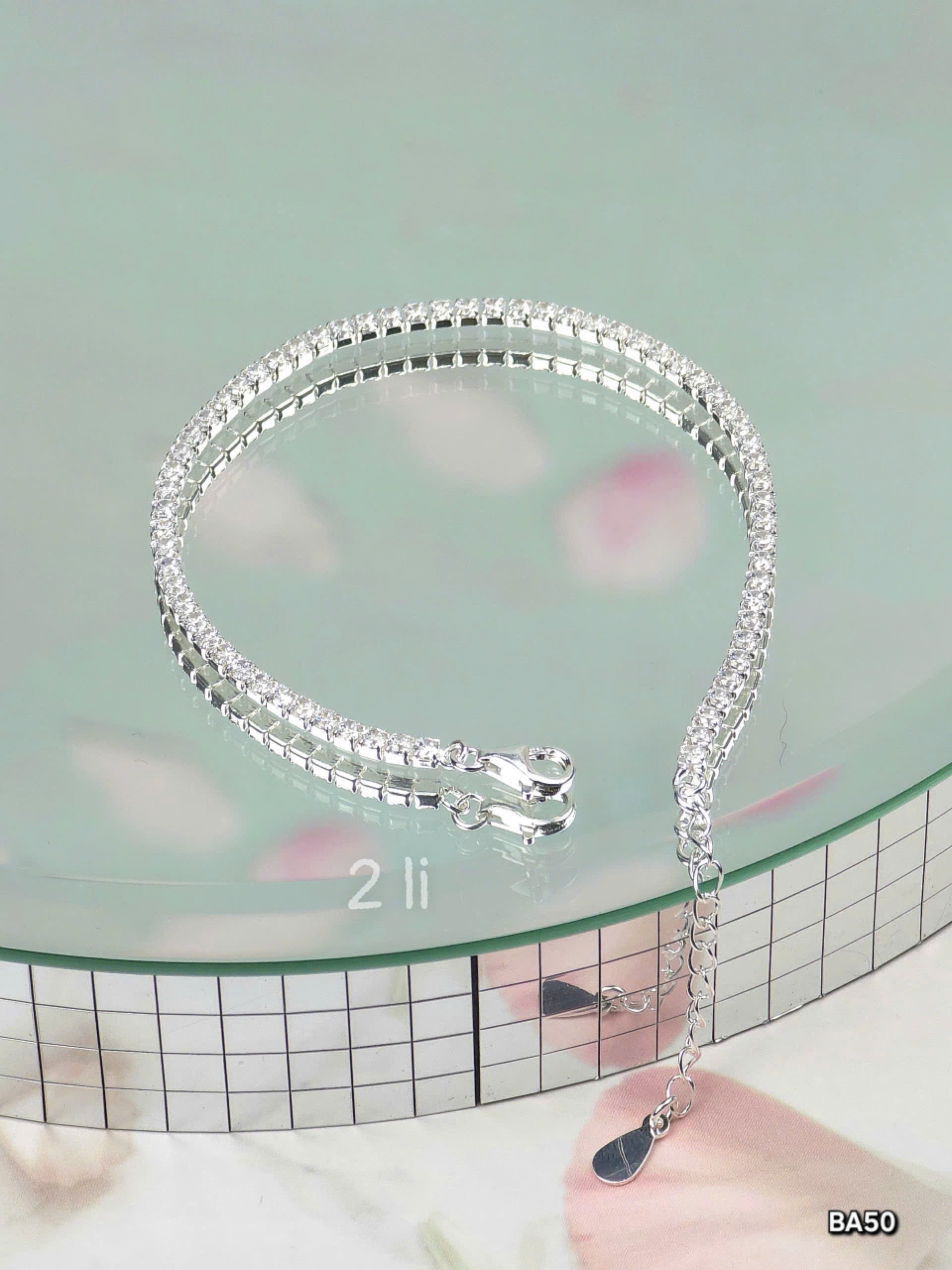 Lắc Tay Bạc Nữ Sang Trọng Đính Đá Lấp Lánh