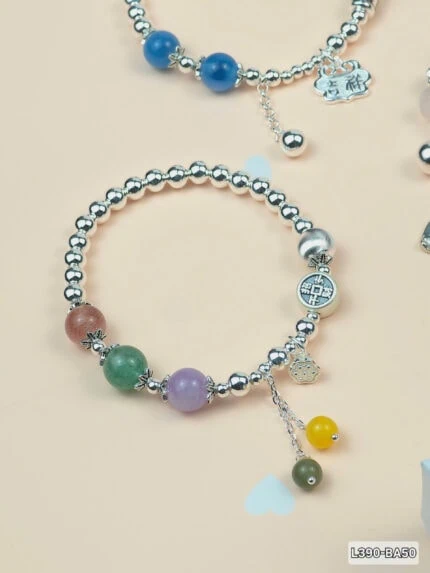Ngoài ra, lắc tay còn được tô điểm bởi các charm bạc hình hoa sen, biểu tượng của sự thanh cao và thuần khiết. Hoa sen được chế tác tỉ mỉ với các cánh hoa sắc nét, tạo nên hiệu ứng lấp lánh và mềm mại. Chiếc lắc còn có một dây bạc ngắn đính kèm, kết thúc bằng hình dáng của cái chuông tinh tế nhỏ xinh, tạo cảm giác thanh thoát.