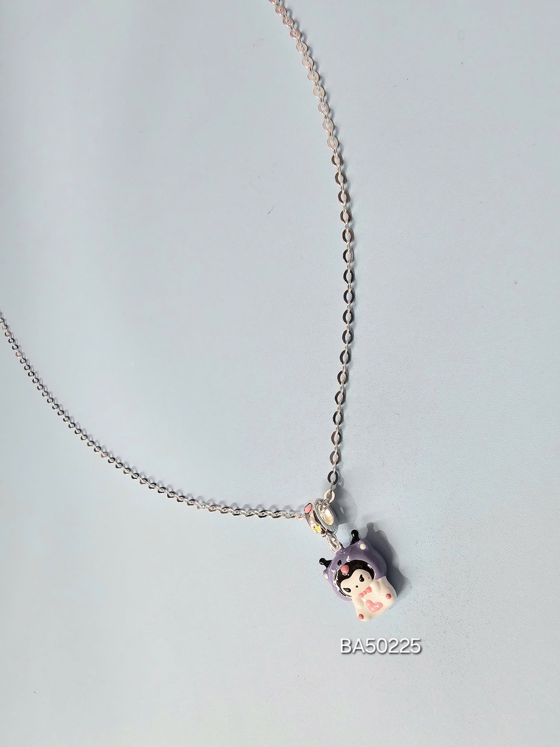 Mặt dây chuyền bạc hình em bé từ bacvn.com là món trang sức độc đáo, mang đến sự ngọt ngào và hồn nhiên. Thiết kế mặt dây chuyền mô phỏng hình ảnh một em bé đáng yêu với khuôn mặt tròn trịa, đôi mắt to tròn và nụ cười chúm chím. Em bé đội chiếc mũ hình con vật màu tím nhạt, điểm xuyết những chấm tròn trắng, tạo nên vẻ dễ thương và sinh động.