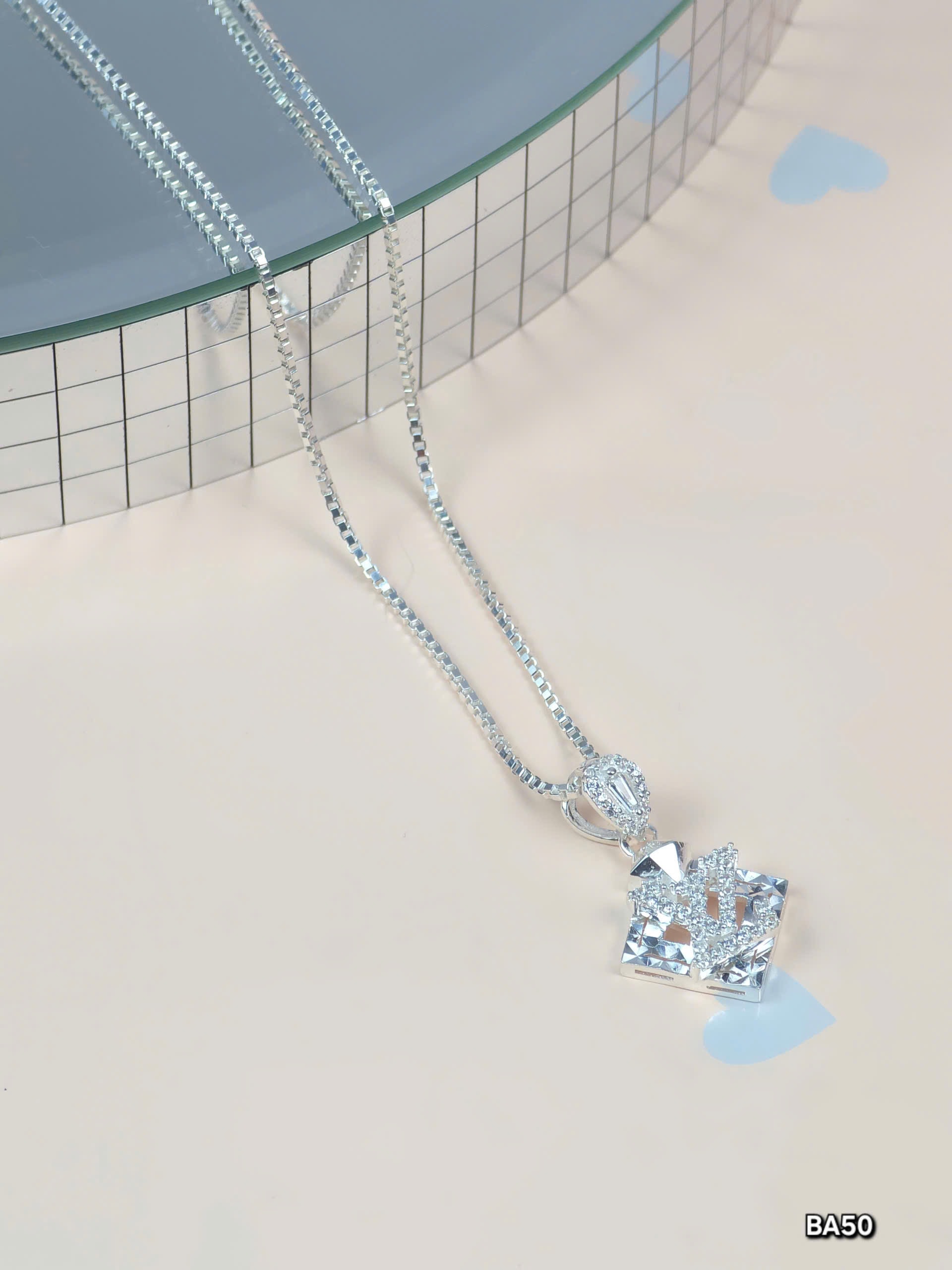 Mặt Dây Chuyền Bạc Ý Thanh Lịch Hình Vuông Vương Miện
