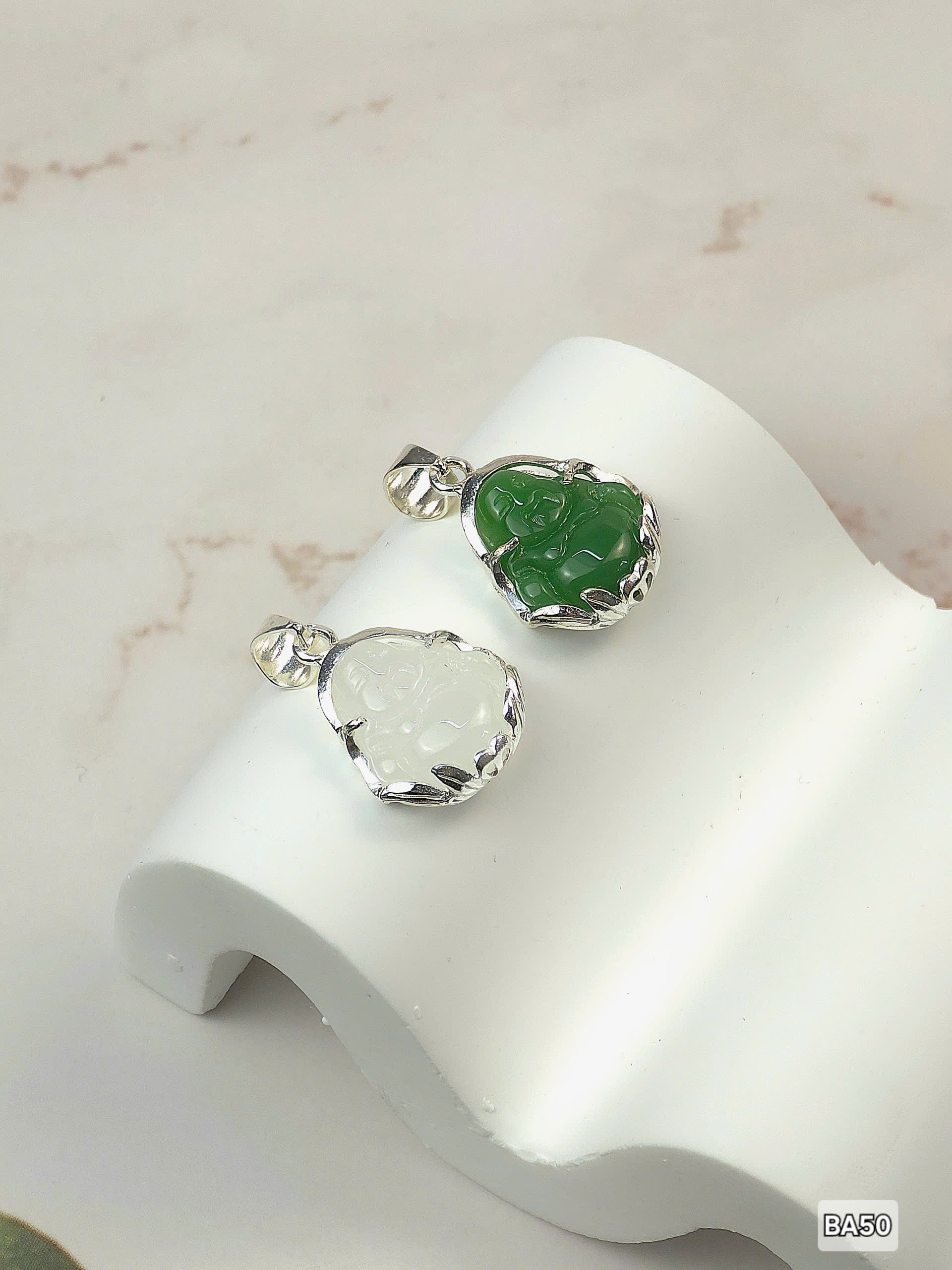 Mặt Dây Chuyền Phật Bọc Bạc Đá Xanh Ngọc – Biểu Tượng Tâm Linh Sang Trọng