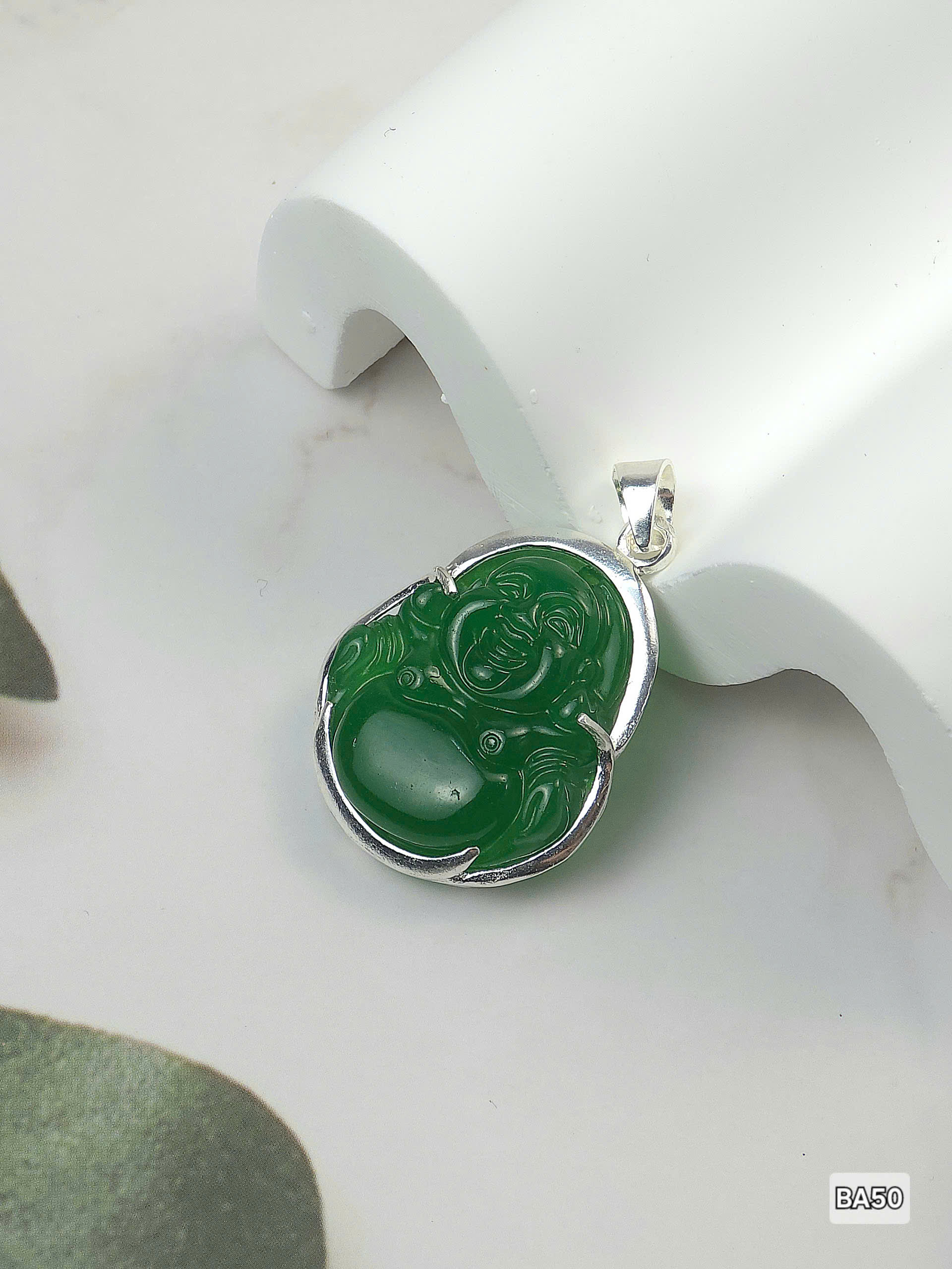 Mặt Dây Chuyền Phật Di Lặc Bọc Bạc 1 Chỉ – Đá Ngọc Bích Xanh