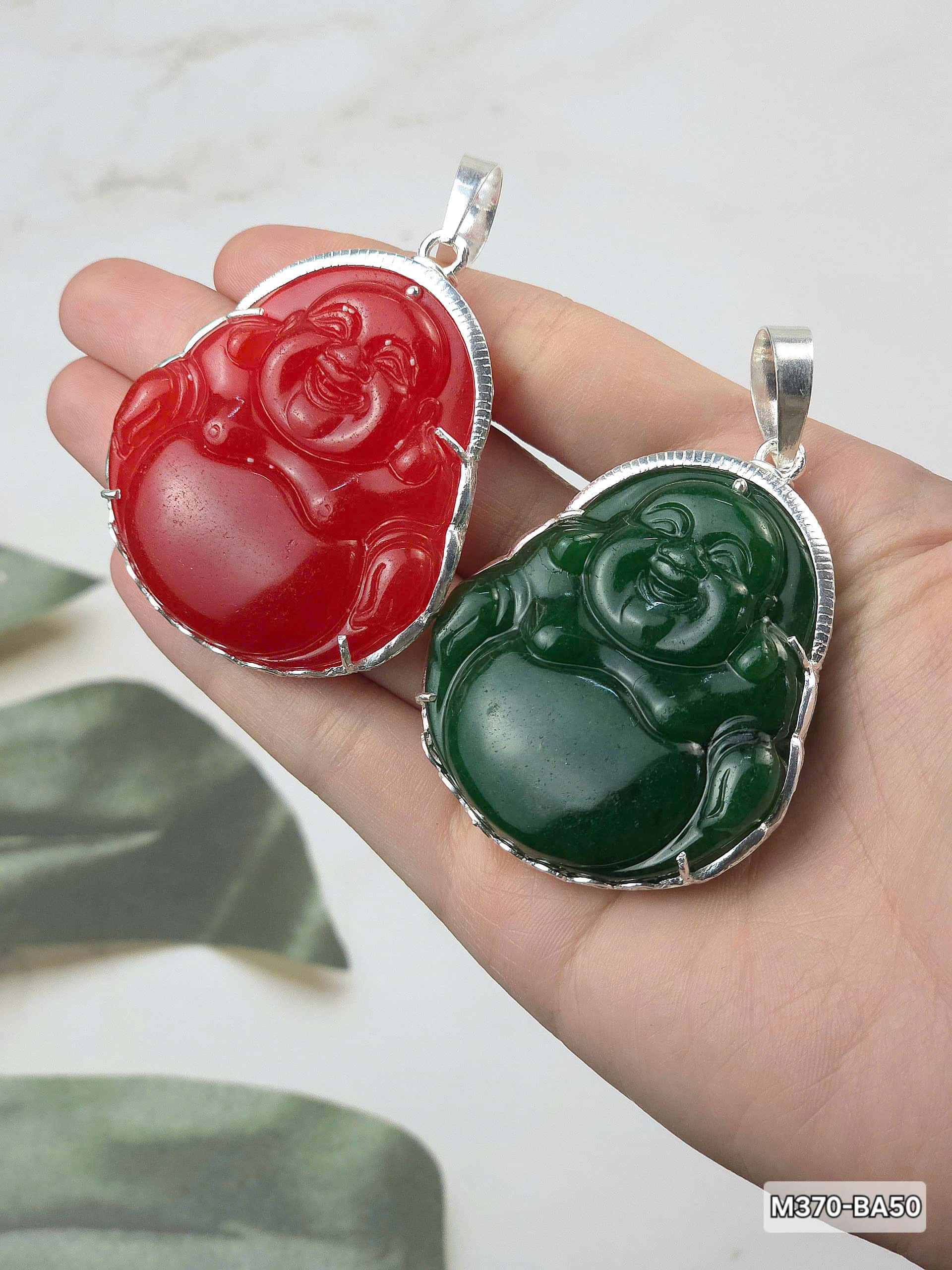 Mặt Phật Bọc Bạc Đá Xanh Ngọc - Đỏ Tươi Cao Cấp