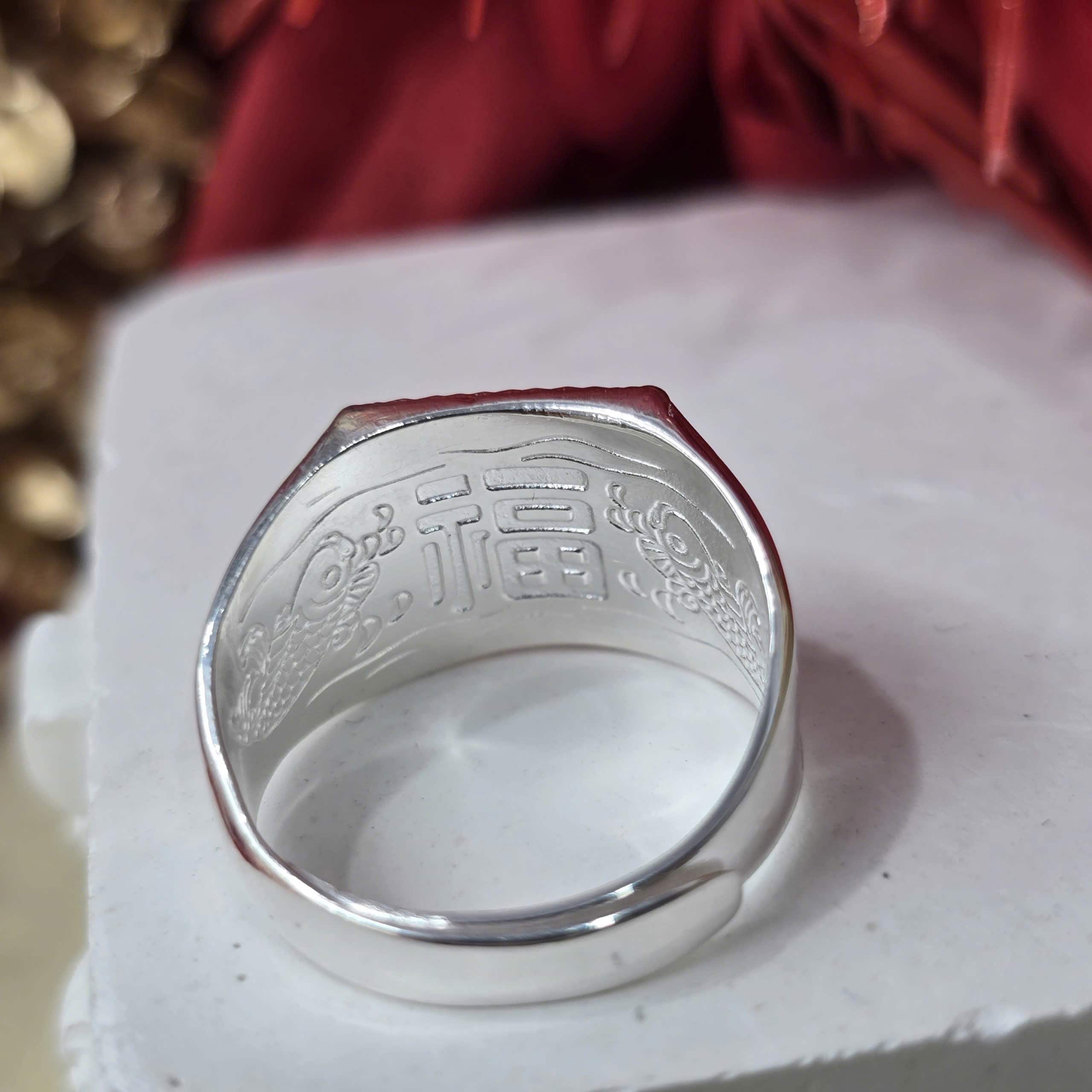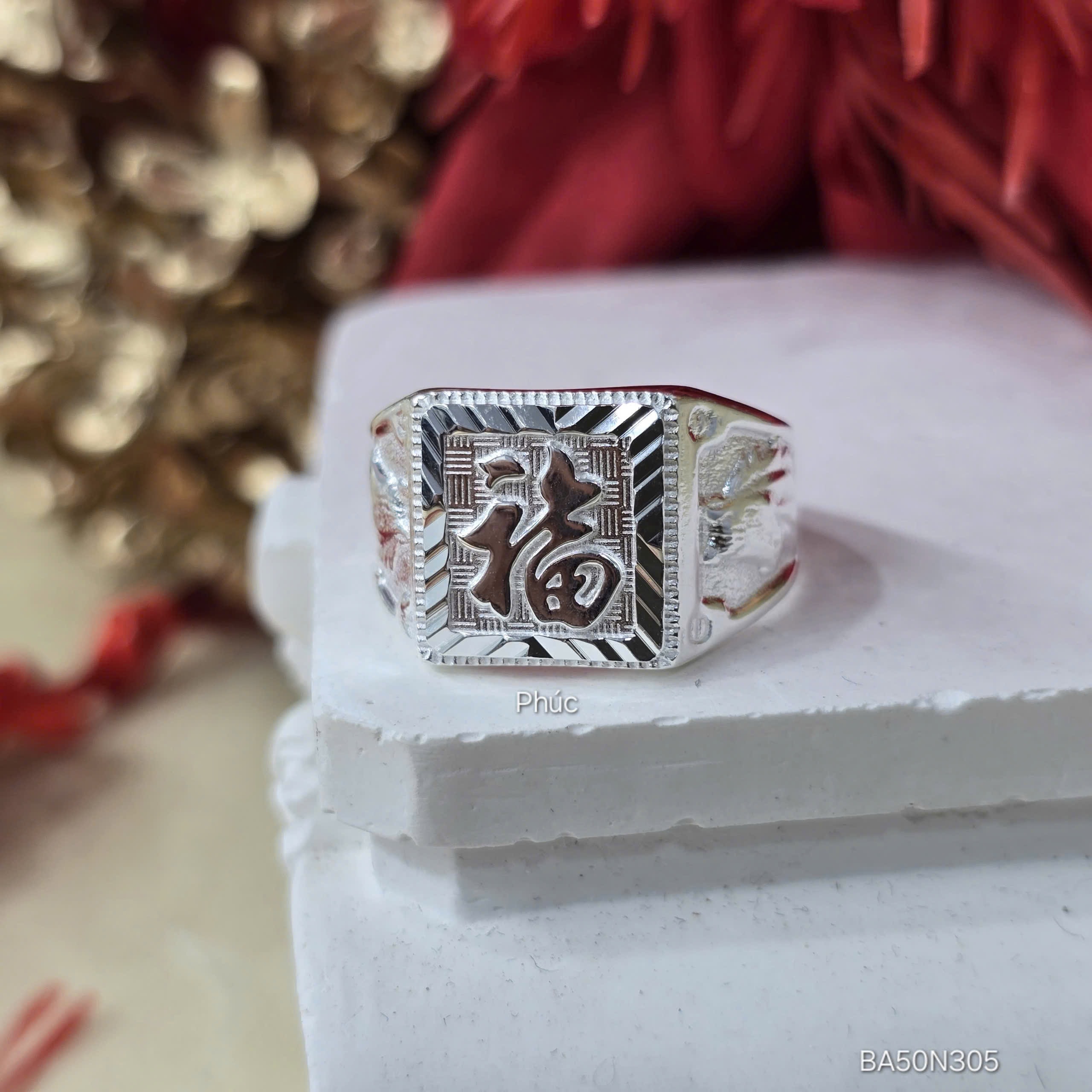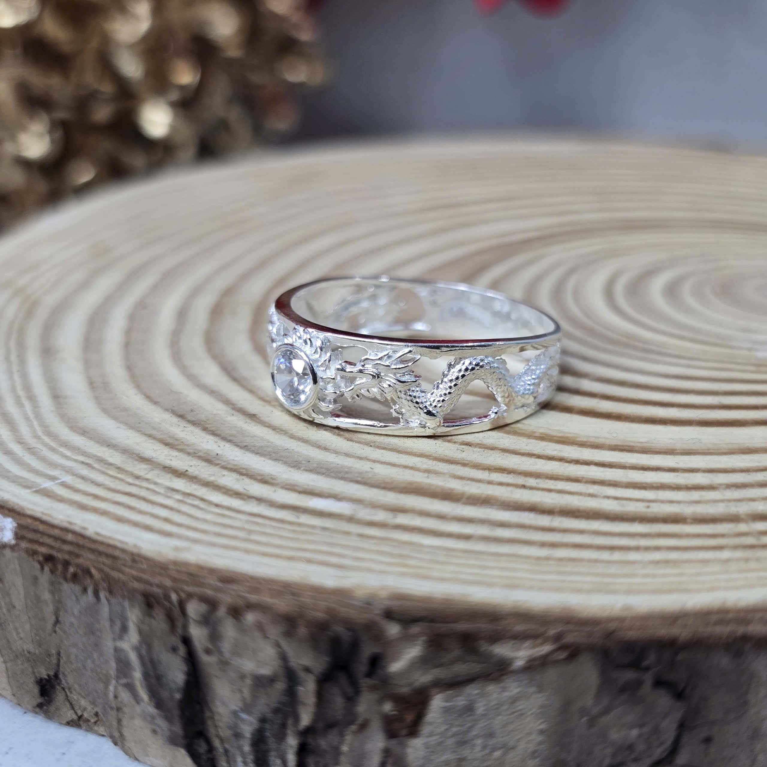 Khám phá nhẫn bạc nam thiết kế tinh xảo với họa tiết rồng uy nghi và đá lấp lánh. Chất liệu bạc cao cấp, phù hợp với phong cách nam tính và sang trọng.