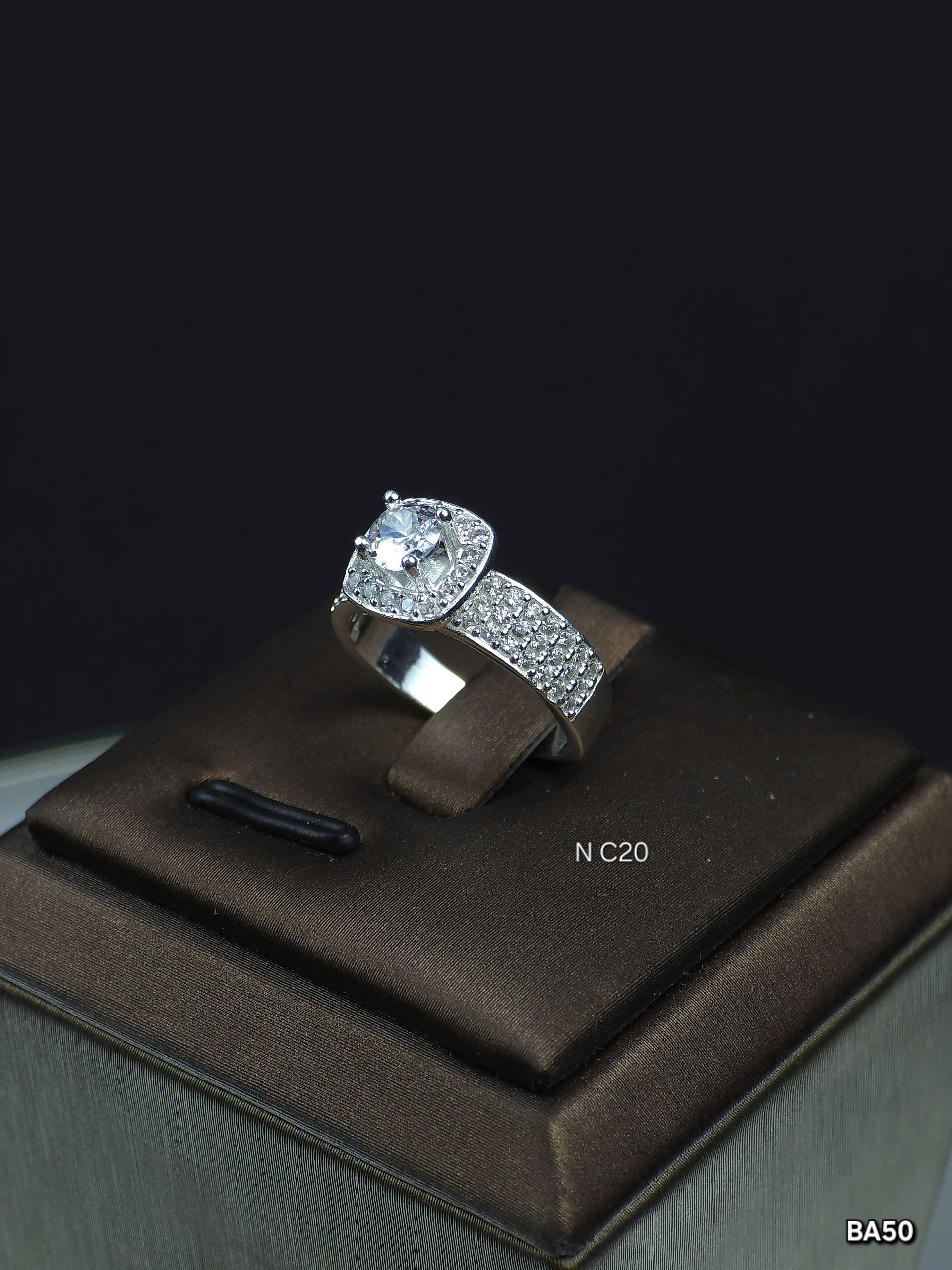 Vành nhẫn được phủ kín bởi các viên đá nhỏ, mang lại sự đồng nhất và sang trọng. Thiết kế này không chỉ phù hợp cho các dịp đặc biệt như lễ cưới, tiệc tối mà còn là món quà ý nghĩa dành tặng người phụ nữ bạn yêu quý. Chất liệu bạc cao cấp đảm bảo độ bền đẹp theo thời gian.