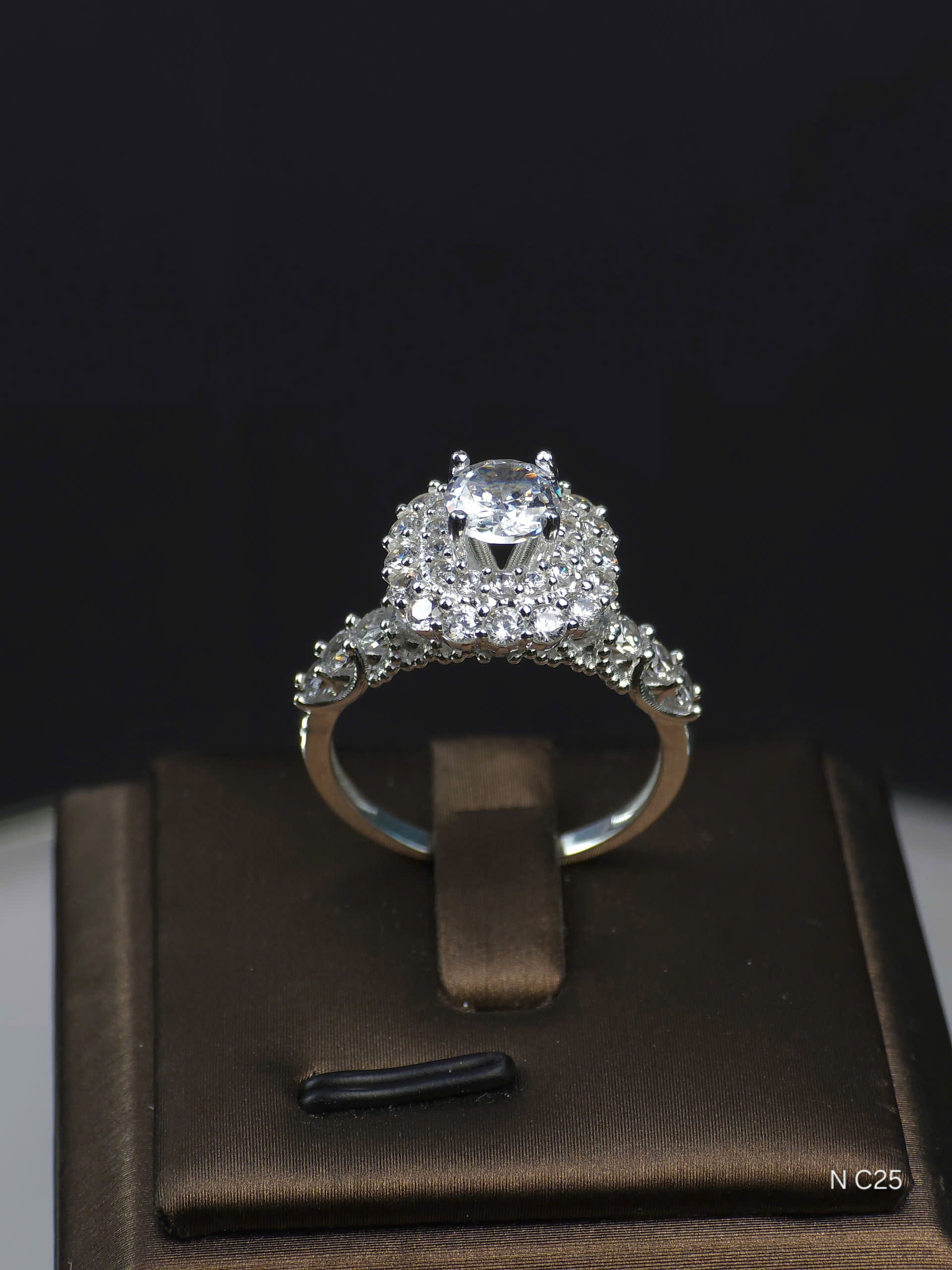 Chiếc Nhẫn Bạc Nữ Ổ Đá Cao là sự kết hợp hoàn hảo giữa sự sang trọng và tinh tế. Với viên đá chính hình tròn lấp lánh được bao quanh bởi các viên đá nhỏ, nhẫn tạo nên phong cách hoa hiện đại, thu hút mọi ánh nhìn. Phần thân nhẫn được làm từ bạc cao cấp, thiết kế thanh thoát với các họa tiết trang trí cầu kỳ, mang đến vẻ nữ tính nhưng không kém phần quý phái.