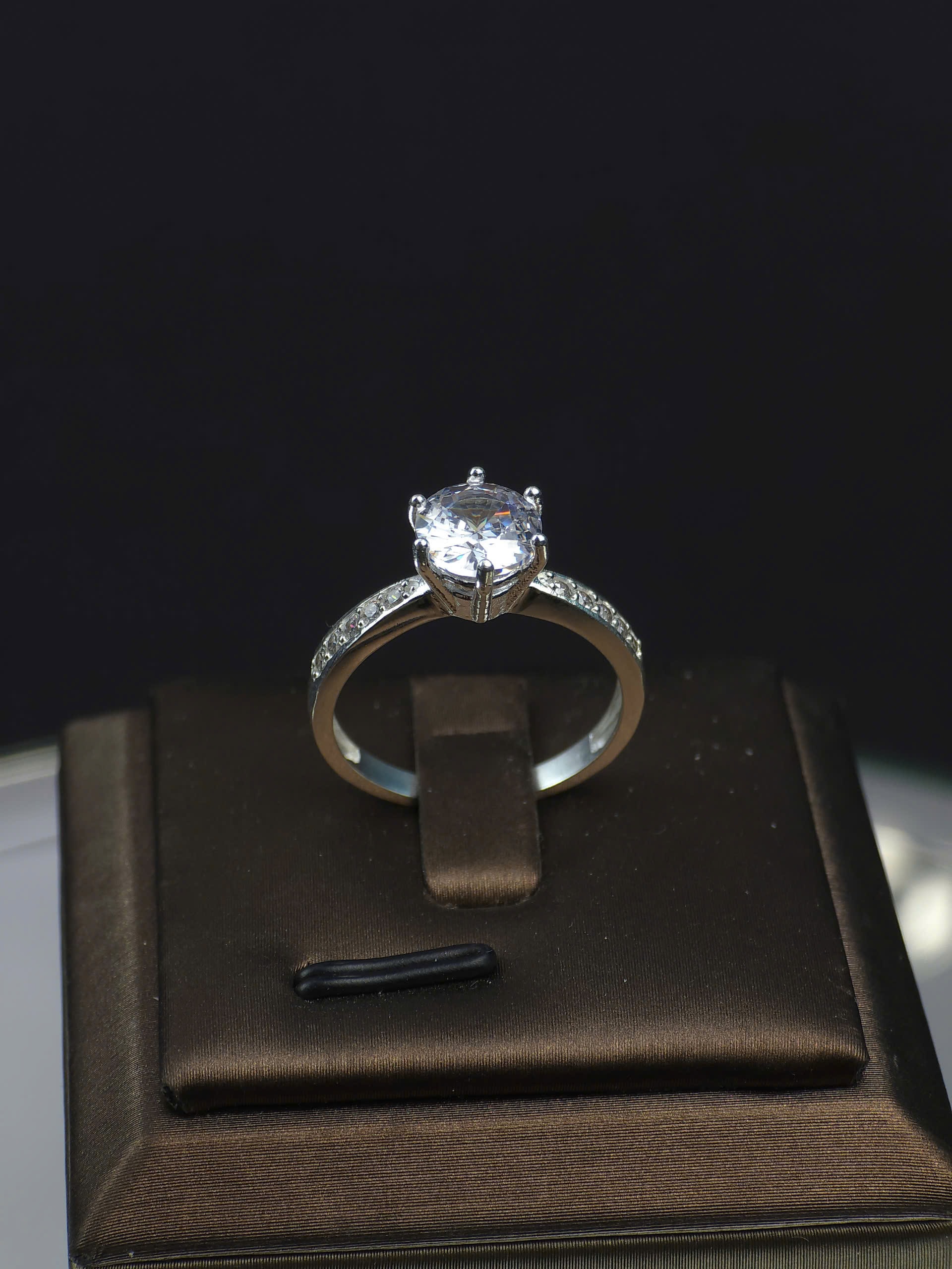 Chiếc Nhẫn Nữ Bạc Ổ Đá Cao Lấp Lánh là sự kết hợp hoàn hảo giữa vẻ đẹp sang trọng và tinh tế. Với thân nhẫn tròn, trơn bóng làm từ bạc sáng, chiếc nhẫn mang đến cảm giác chắc chắn và độ sáng bắt mắt. Phần trung tâm của nhẫn là một viên đá lớn lấp lánh, được gắn trên ổ cao, tạo hiệu ứng nổi bật và thu hút ánh nhìn. Viên đá có thể là zircon hoặc đá nhân tạo, với mặt cắt nhiều góc cạnh, phản chiếu ánh sáng một cách đẹp mắt.