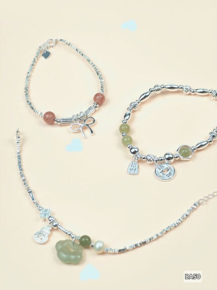 Lắc Tay Bạc Mix Ngọc Đỏ & Xanh Tinh Xảo