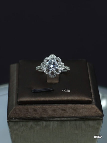 Nhẫn Bạc Nữ Ổ Đá Cao Tinh Xảo Họa Tiết Hoa Văn