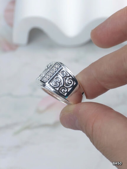 Nhẫn Nam Bạc Sáng Bóng Họa Tiết Tinh Xảo