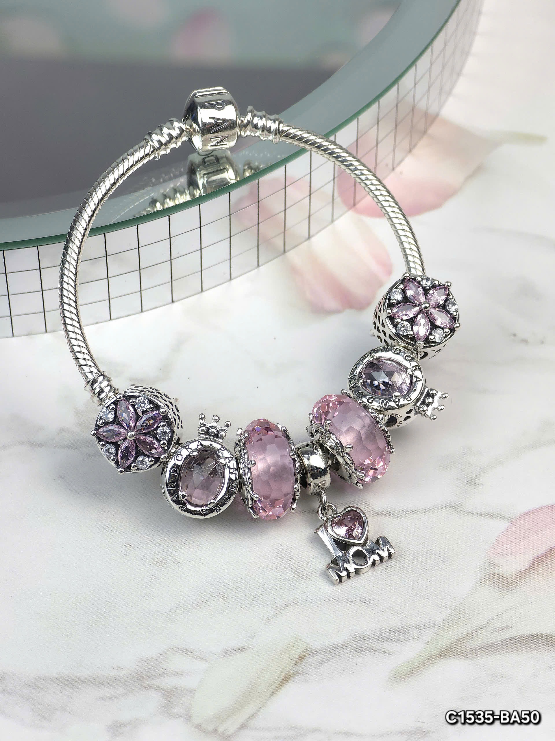 Set Vòng Tay Bạc Pandora Thiết Kế Tinh Xảo Với Charm Trang Trí