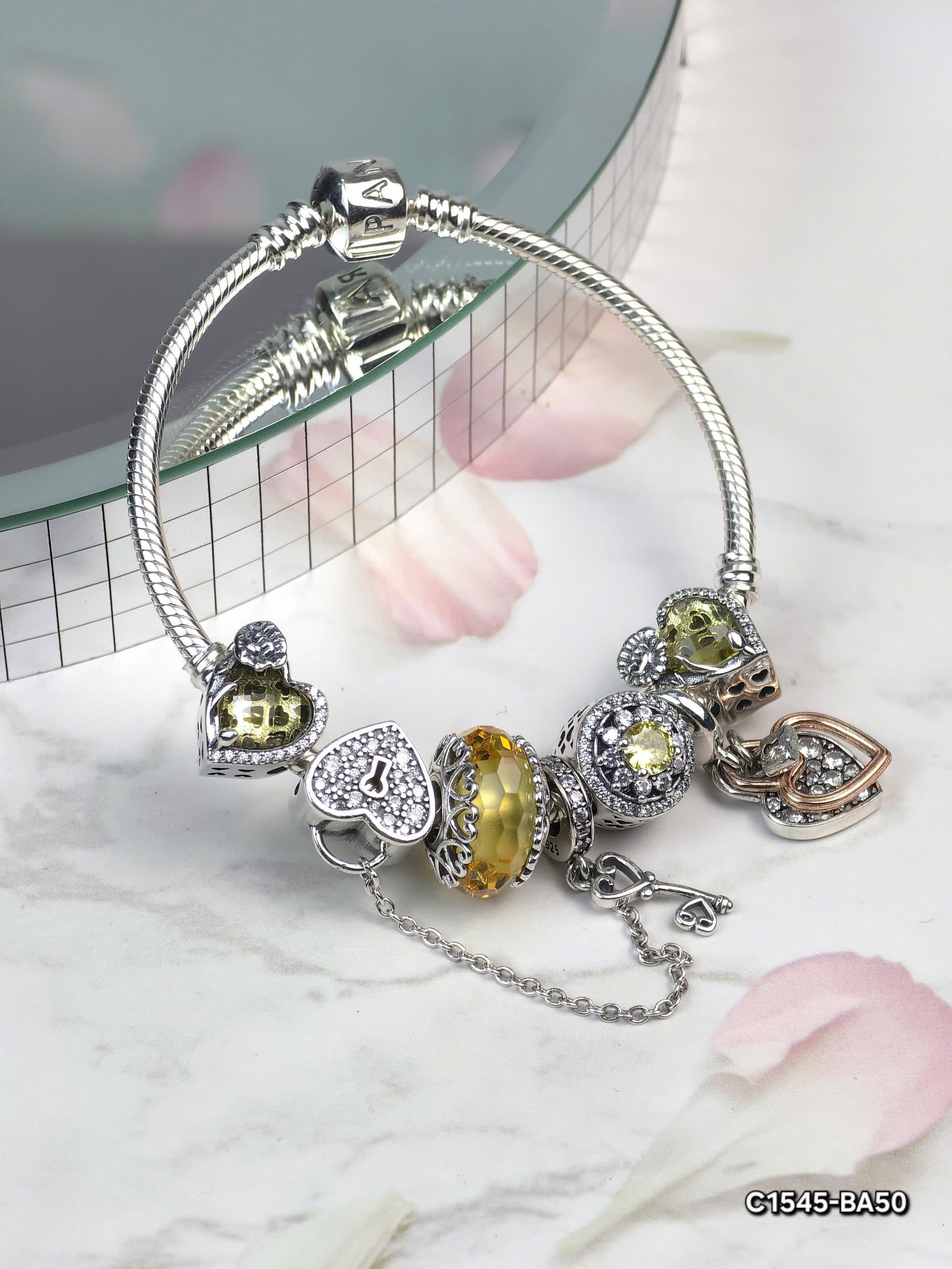 Set Vòng Tay Pandora Bạc Với Charm Trang Trí Tinh Xảo