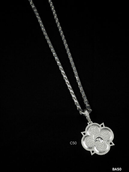 Mặt Dây Chuyền Nam Bạc Thiết Kế Hình Cánh Hoa Đính Đá Lấp Lánh