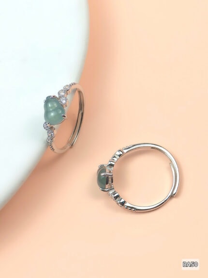 Nhẫn Bạc Nữ Đính Đá Xanh Tinh Xảo, Chỉnh Size Linh Hoạt