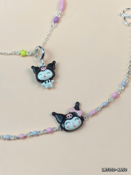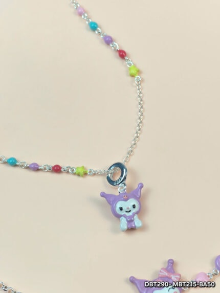Bộ Trang Sức Bạc Trẻ Em Kuromi – Lắc Tay & Vòng Cổ Dễ Thương