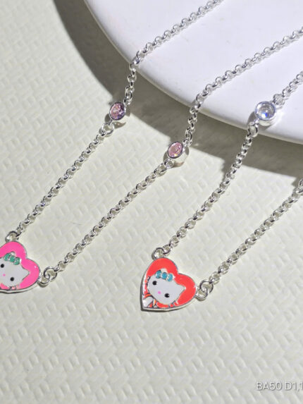 Dây Chuyền Bạc Liền Mặt Hello Kitty & Trái Tim Hồng