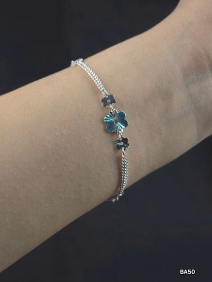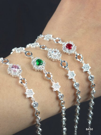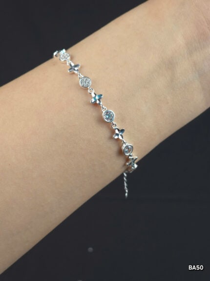 Lắc Tay Bạc Nữ Đính Đá Lấp Lánh Thiết Kế Hoa Tinh Xảo