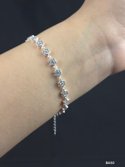 Lắc Tay Bạc Nữ Đính Đá Lấp Lánh Thiết Kế Ngôi Sao Thanh Lịch
