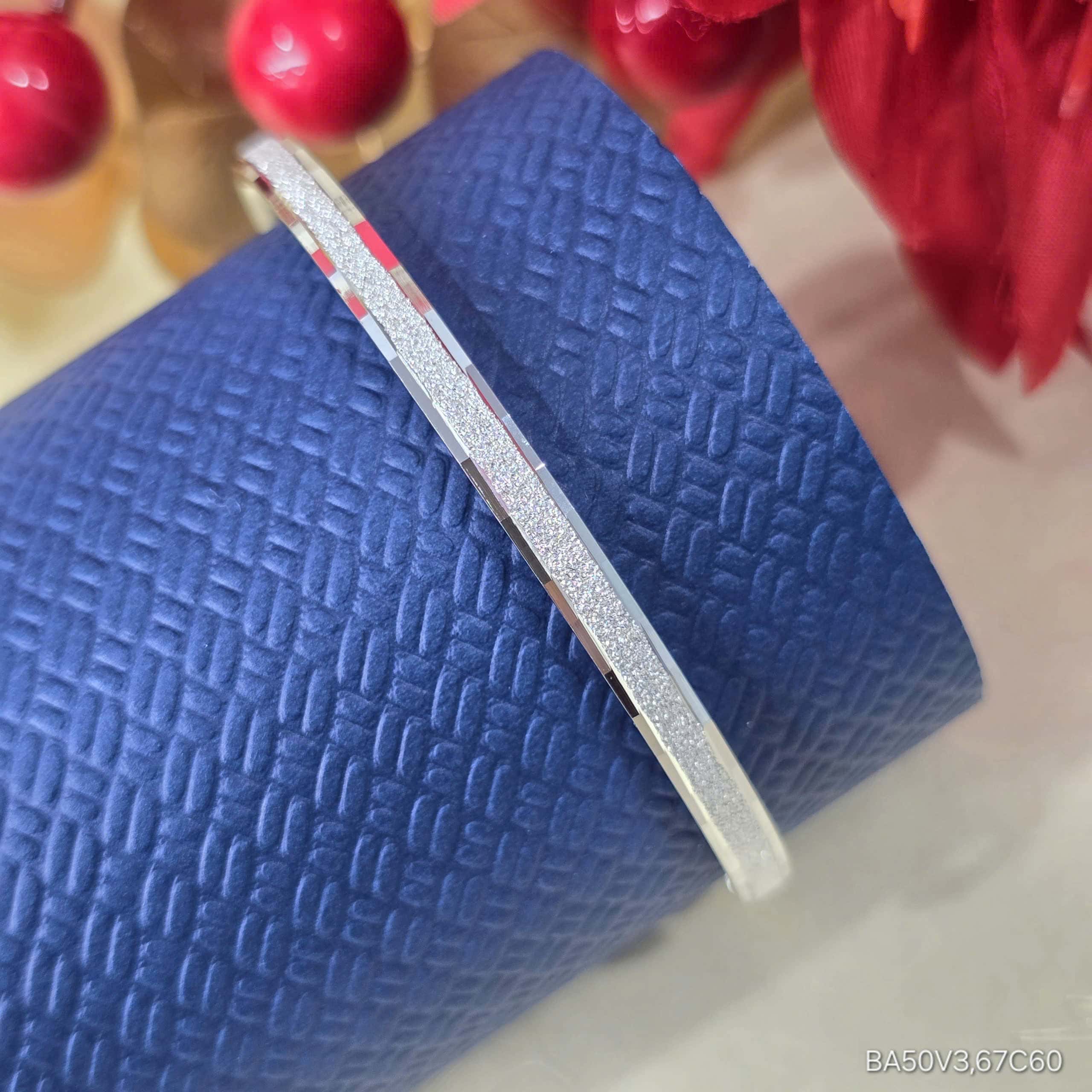 Chiếc Vòng Tay Bạc Tinh Tế Thiết Kế Mở Thanh Lịch mang đến cho bạn vẻ đẹp tinh giản mà nổi bật. Với khối lượng bạc 3.67 chỉ, sản phẩm này được chế tác từ bạc 925 chất lượng cao, đảm bảo độ bền và sáng bóng theo thời gian. Thiết kế tròn mảnh mai kết hợp với bề mặt được đánh bóng, tạo nên độ sáng lung linh, hoàn hảo cho bất kỳ dịp nào. Đường viền kim loại mờ ở phía trên vòng không chỉ nâng cao tính thẩm mỹ mà còn tạo sự tương phản độc đáo, thu hút ánh nhìn. Đặc biệt, thiết kế mở giúp dễ dàng điều chỉnh kích thước, phù hợp với nhiều kích thước cổ tay khác nhau, làm cho sản phẩm trở thành lựa chọn lý tưởng cho cả hàng ngày hay dự tiệc. Dù đi làm hay tham gia sự kiện, chiếc vòng tay này sẽ tôn lên vẻ đẹp cá nhân và phong cách của bạn.